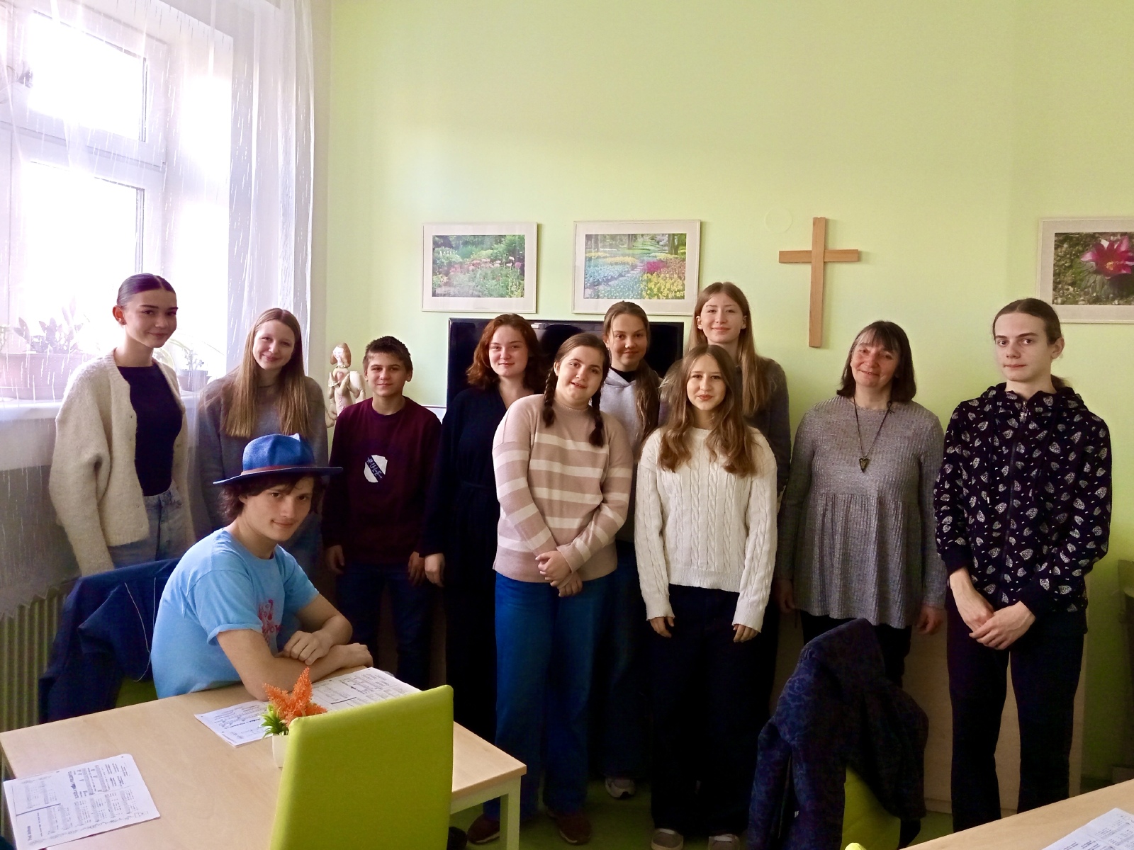 Ani na světlo a sluníčko skoupý listopad nezabránil našim zpěvákům v návštěvě kutnohorské nemocnice. Zpívali totiž pacientům na pěti (!) odděleních kutnohorské nemocnice. Přibylo ještě NIP - oddělení následné intenzivní péče, kde si naše studenty sestřičky vysloveně vyžádaly. To je pro nás velké uznání a potvrzení potřebnosti našeho dobrovolničení. Tentokrát skupina byla početnější než obvykle, přibyli noví zpěváci z kvarty, kteří tak zaplnili místo po skvělých, ale momentálně zaneprázdněných oktavánech.
