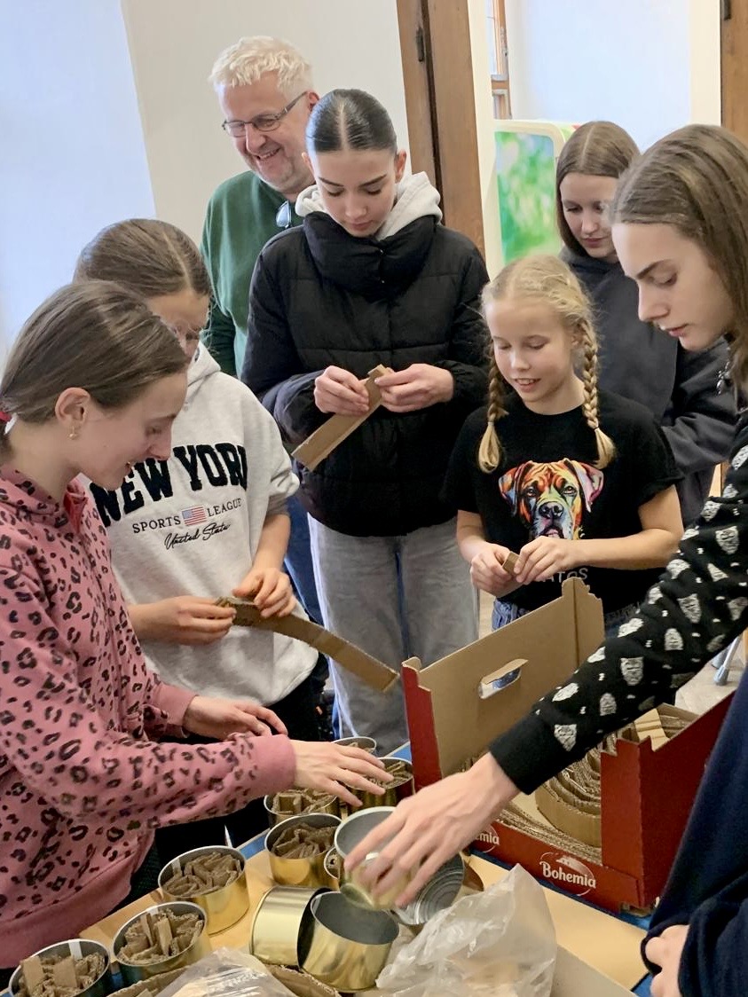 Zapojili jsme se studenty v rámci školního klubu do projektu Světlo a teplo pro Ukrajinu neziskové organiizace Člověk v tísni a vyráběli jsme “zákopové svíčky”. Dá se jimi ohřát jídlo nebo zahřát zmrzlé ruce či nohy a poslouží ke svícení. S nápadem přišla paní Soňa Krejčová z kutnohorské farnosti a za velké podpory vedení školy a pana arciděkana Vladislava Brokeše jsme vyrábění svíček zrealizovali. Jednu ze svíček jsme zapálili, opravdu hodně hřála a vydržela hořet tři hodiny. Do konce února ještě nějaké vyrobíme, zatím jich máme asi sto. Odvezeme je do Prahy a odtud je dobrovolníci povezou na Ukrajinu, tam, kde budou nejvíc potřeba. Více fotografií ve fotogalerii.