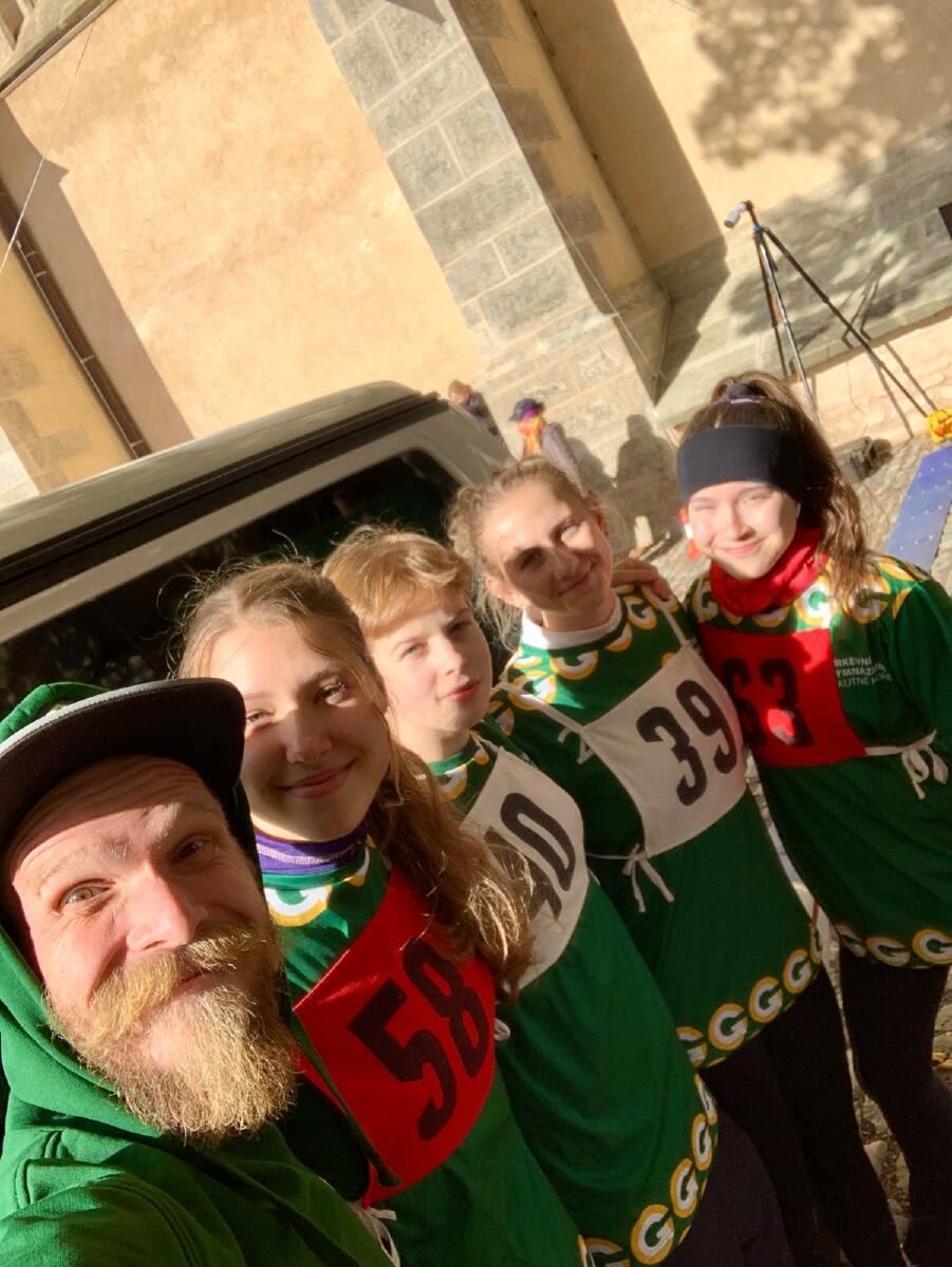 Na organizaci se z naší školy podílela řada vyučujících, především Radka Karelová, která své síly nasadila na přípravu trasy, cen a starala se spolu s hlavní organizátorkou Soňou Krejčovou o hladký průběh akce, přestože ji samotnou lákalo se závodu zúčastnit. Ať už v zelených školních dresech nebo v jiných barvách nakonec našlo odvahu několik nadšenců z řad studentů i učitelů, kteří se popasovali s nerovným kutnohorským terénem na tratích 3,5 km a 10 km, mladší účastníci bojovali také v kategorii Dětský závod III s překážkami. Příležitost se sportovně utkat v rovině student-učitel ve škole běžně nemáme, o to byl závod pestřejší a jako učitelka mohu říct, že je to pocit nepředatelný. Nepsaná věta "Trhni svého učitele!" se vznášela ve vzduchu nad funícími běžci hrnoucími spadané listí spletitou změtí cestiček na Rovinách a trička jsme propotili všichni.