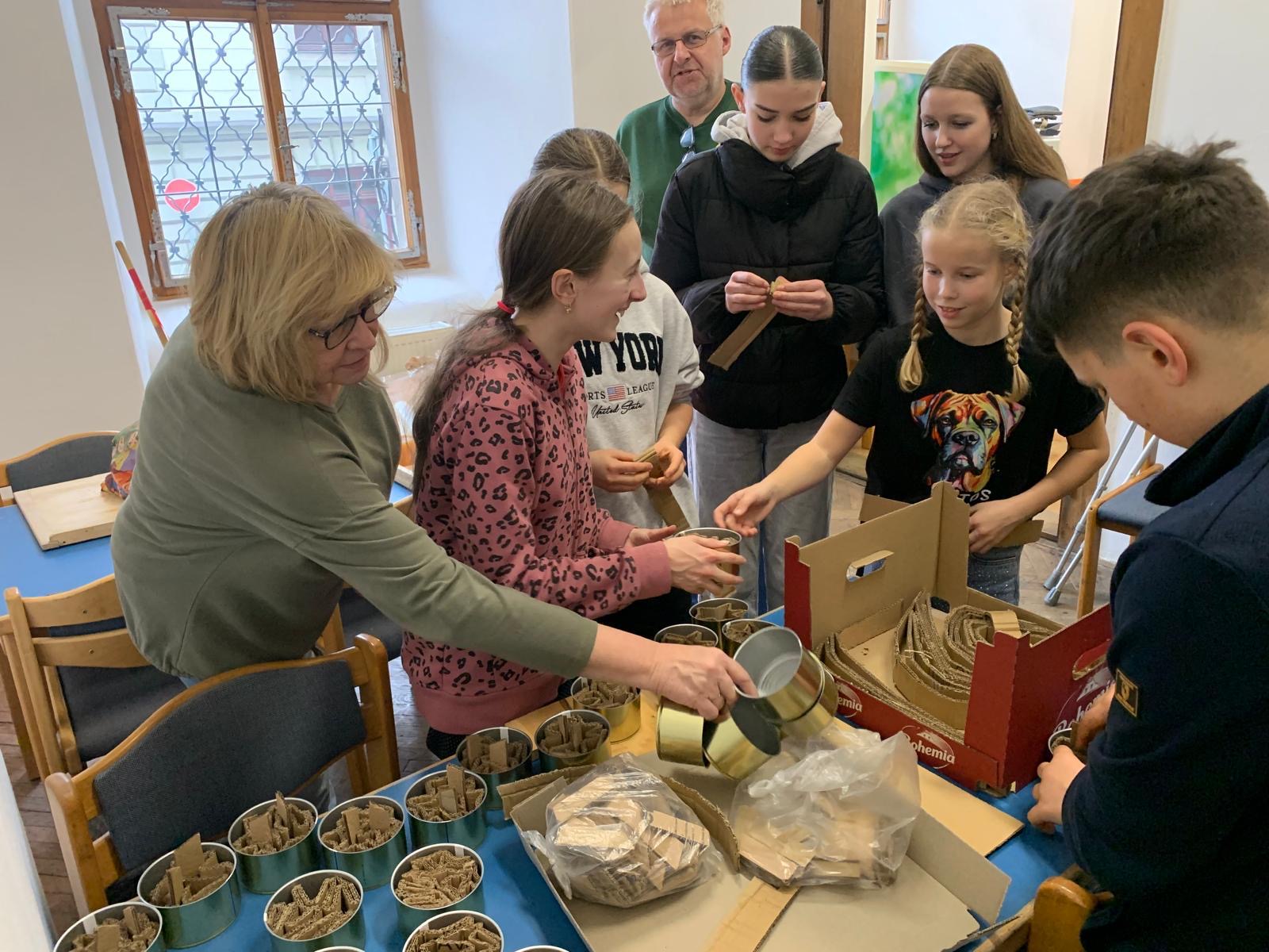 Zapojili jsme se studenty v rámci školního klubu do projektu Světlo a teplo pro Ukrajinu neziskové organiizace Člověk v tísni a vyráběli jsme “zákopové svíčky”. Dá se jimi ohřát jídlo nebo zahřát zmrzlé ruce či nohy a poslouží ke svícení. S nápadem přišla paní Soňa Krejčová z kutnohorské farnosti a za velké podpory vedení školy a pana arciděkana Vladislava Brokeše jsme vyrábění svíček zrealizovali. Jednu ze svíček jsme zapálili, opravdu hodně hřála a vydržela hořet tři hodiny. Do konce února ještě nějaké vyrobíme, zatím jich máme asi sto. Odvezeme je do Prahy a odtud je dobrovolníci povezou na Ukrajinu, tam, kde budou nejvíc potřeba. Více fotografií ve fotogalerii.