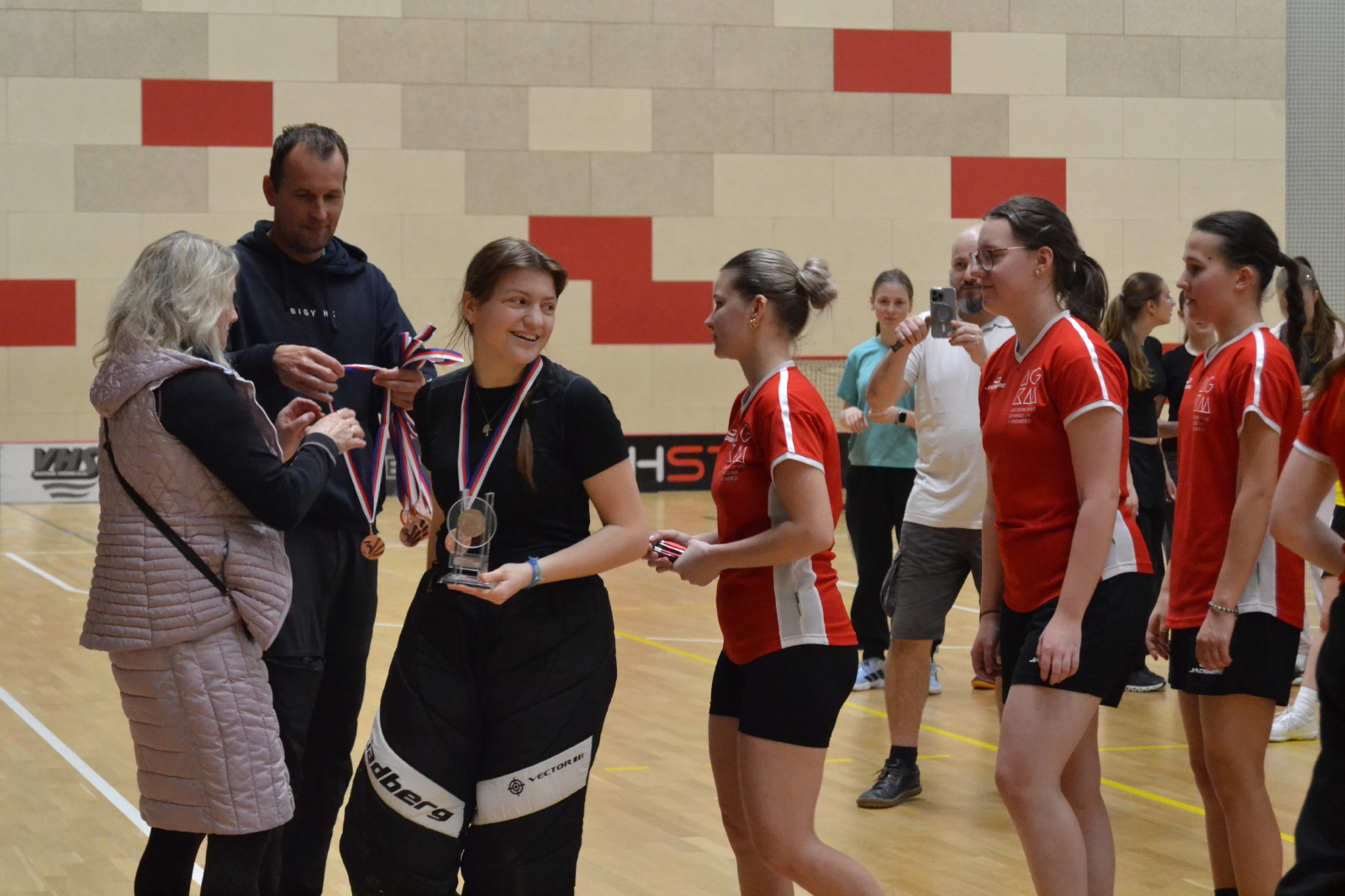 Rozhodcovali studenti Jakub Hyhlík a Radek Votava, kteří mají licenci rozhodčích. Žofie Kvapilová ze sexty těžké zápasy děvčat fotila. Sportovní emoce florbalistek bouřily v celé Klimešce.